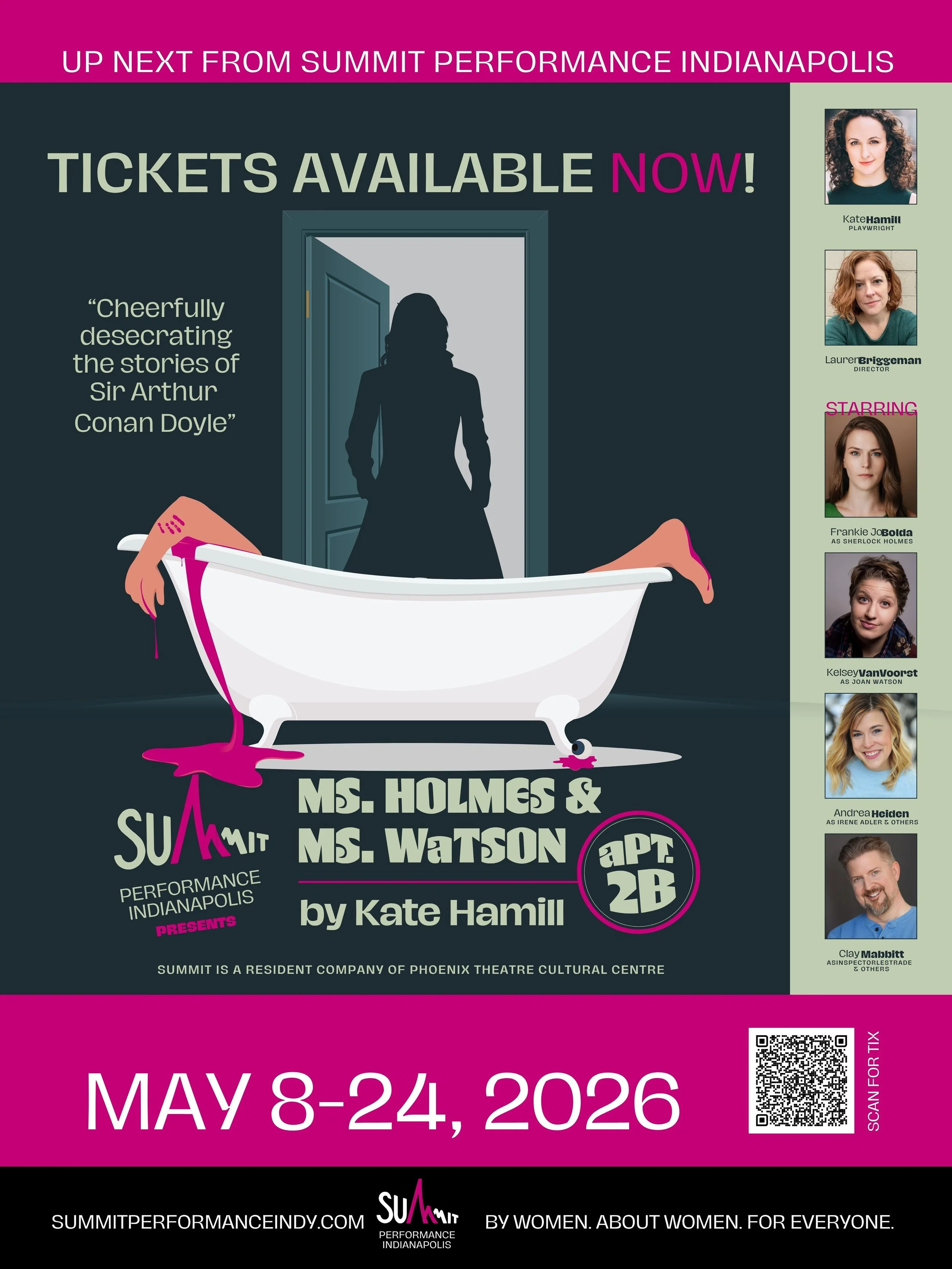 After surviving the pandemic and an equally epic personal crisis, Ms. Joan “not-a-doctor” Watson has run from her problems–all the way to London!--and needs a place to crash. Ms. Sherlock “is-that-even-a-name?” Holmes needs a roomie that she can’t scare away. And long-suffering landlady Mrs. Hudson probably needs some Xanax. Join Summit in May 2026 as we take on our first full-fledged comedic romp with this darkly funny, boldly feminist, madcap escapade.
